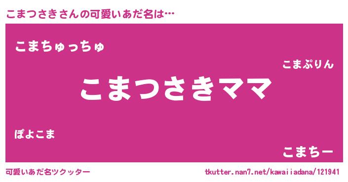 | ポケモン風あだ名 | 『コマゴンZ』『ゼニコマ』 |
