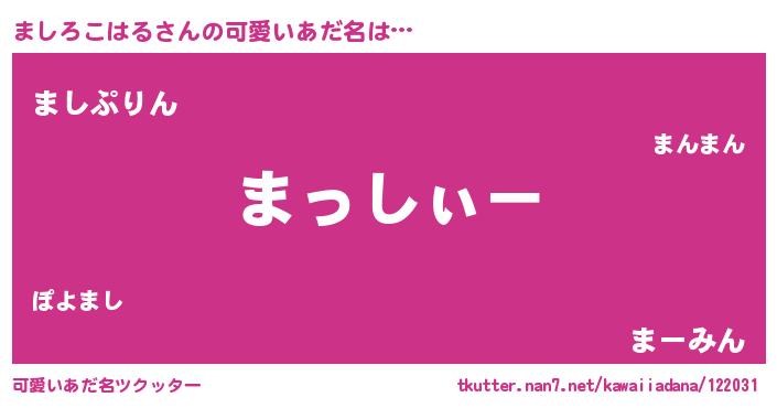| ポケモン風あだ名 | 『ヒマシロコハル』『マシキング』 |