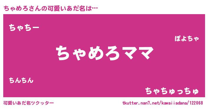 | 意味不明あだ名 | 『永久保存ちゃめろ』『ペロリンちゃめろ』 |