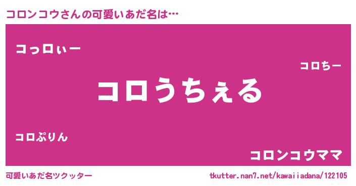| 意味不明あだ名 | 『自称コロンコウ』『永久保存コロンコウ』 |