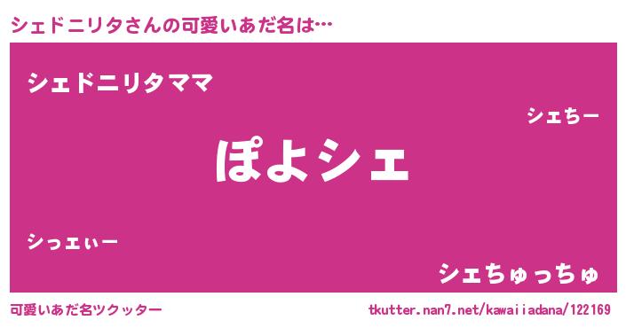 | ヘコむあだ名 | 『シェドニリタ(爆)』『酢こんぶ』 |