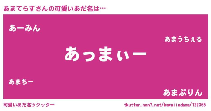 | ポケモン風あだ名 | 『アマゴンZ』『ヒアマテラス』 |