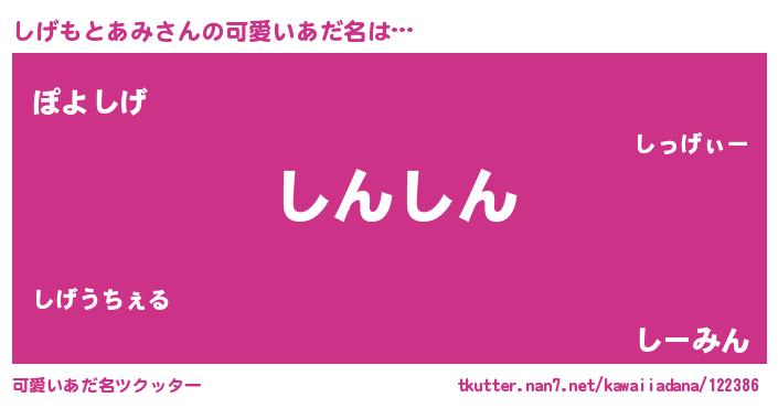 | ヘコむあだ名 | 『しげにー』『しげぷりん』 |
