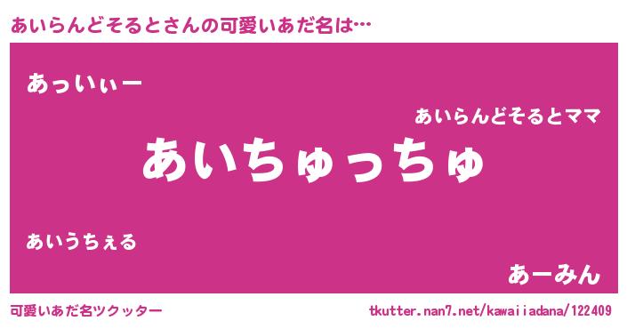 | ヘコむあだ名 | 『あいを』『あいらんどそると(苦笑)』 |