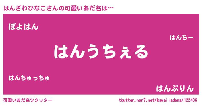 | 男性向けラノベタイトル風あだ名 | 『Re:はんざわひなこから始める異世界生活』 |