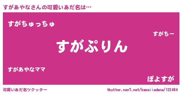 | 男性向けラノベタイトル風あだ名 | 『すがあやな~年齢イコール彼女いない歴の魔法使い~』 |