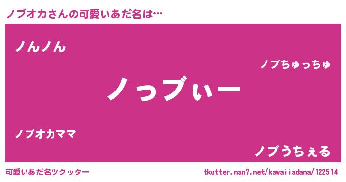 | 恥ずかしいあだ名 | 『ノブリンリン』『プリティーノブオカ』 |