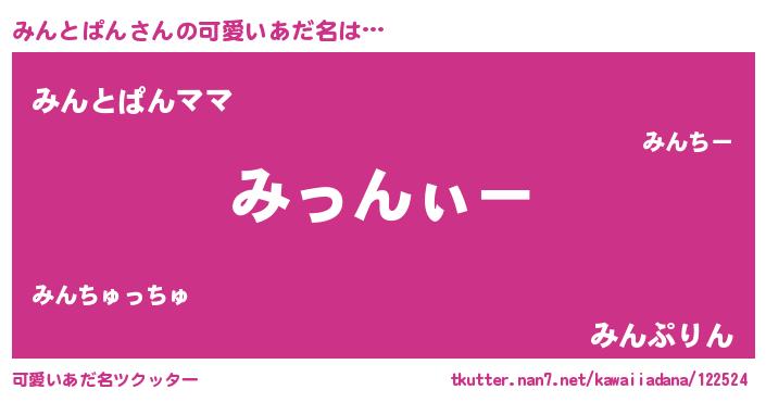 | ヘコむあだ名 | 『みんっぺ』『みんとぱん(爆)』 |