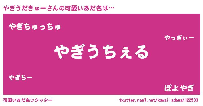 | 欧米人風あだ名 | 『ケンブリッジやぎうだきゅー』 |