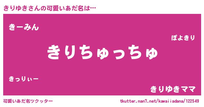 | 女子向けラノベタイトル風あだ名 | 『きりゆき恋絵巻』『きりゆきの契約王妃』 |