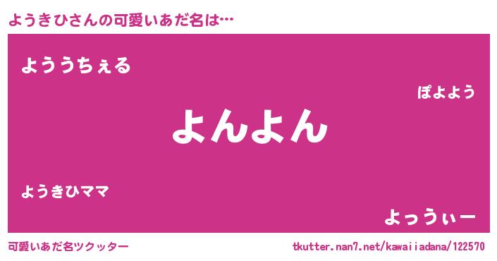 | 男性向けラノベタイトル風あだ名 | 『ようきひの憂鬱』『魔弾の王とようきひ』 |