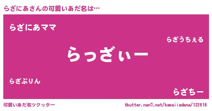 | ヘコむあだ名 | 『らざっぺ』『らざにあ(苦笑)』 |