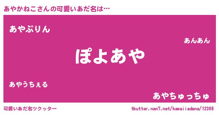 | 意味不明あだ名 | 『住所不定無職あやかねこ(5歳)』 |