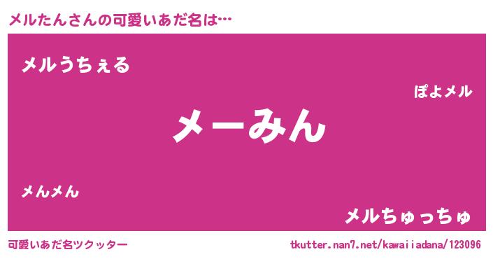 | 意味不明あだ名 | 『自称メルたん』『ペロリンメルたん』 |