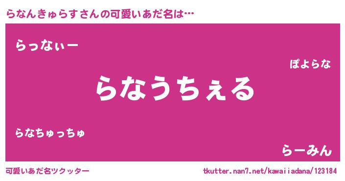 | 男性向けラノベタイトル風あだ名 | 『Re:らなんきゅらすから始める異世界生活』 |