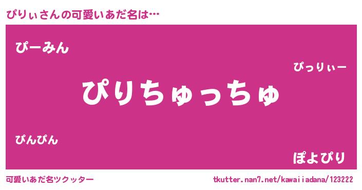 | ヘコむあだ名 | 『ぴりぷりん』『ぴりふぇ~』 |