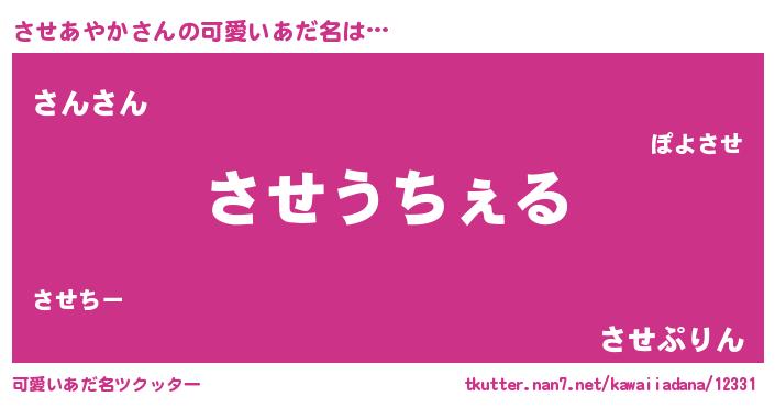 | 意味不明あだ名 | 『自称させあやか』『ペロリンさせあやか』 |