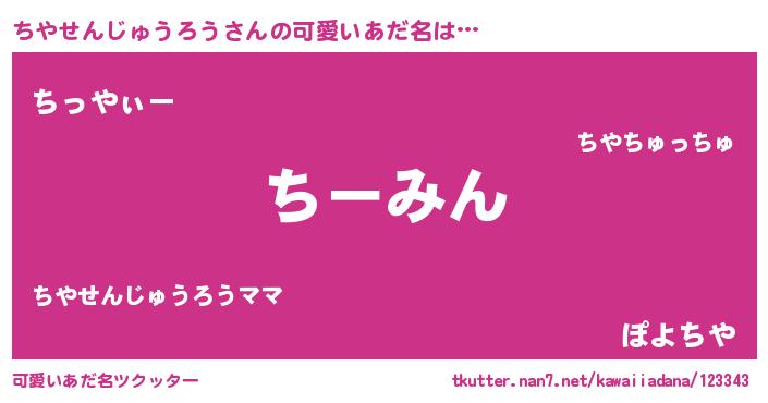 | ヘコむあだ名 | 『ちやぷりん』『ちやせんじゅうろう(苦笑)』 |