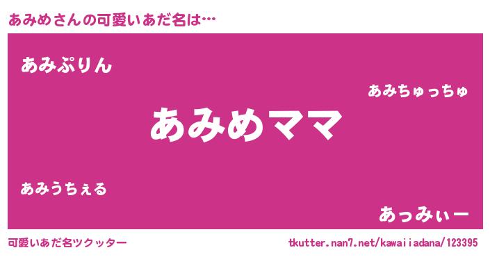 | 意味不明あだ名 | 『永久保存あみめ』『もやし科あみめ属』 |