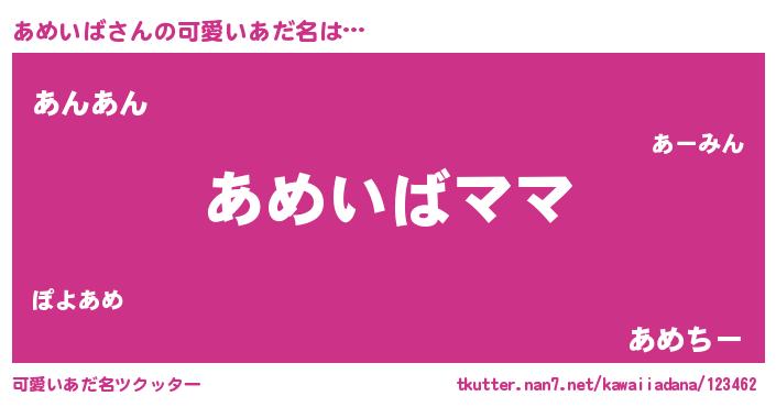 | ヘコむあだ名 | 『あめいば(笑)』『あめにー』 |
