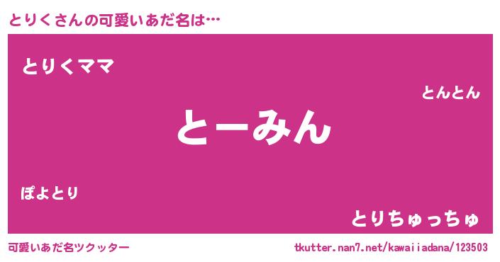 | 男性向けラノベタイトル風あだ名 | 『うちのとりくが世界を掌握している!』 |
