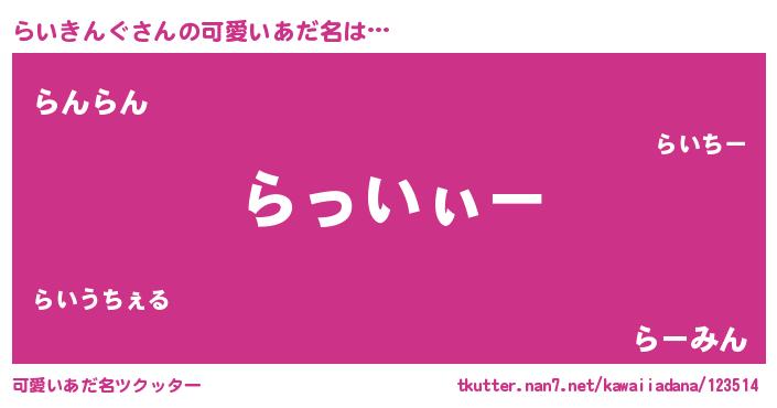 | ヘコむあだ名 | 『らいっぺ』『らいにゅー』 |