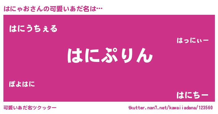 | 男性向けラノベタイトル風あだ名 | 『転生したらはにゃおだった件』 |