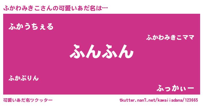 | ヒーロー風カッコイイあだ名 | 『スーパーフカワミキコ』『魔戒騎士フカ』 |