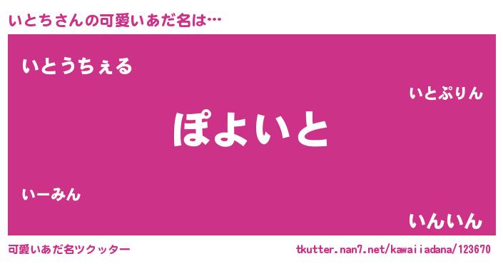 | 意味不明あだ名 | 『住所不定無職いとち(3歳)』『自称いとち』 |