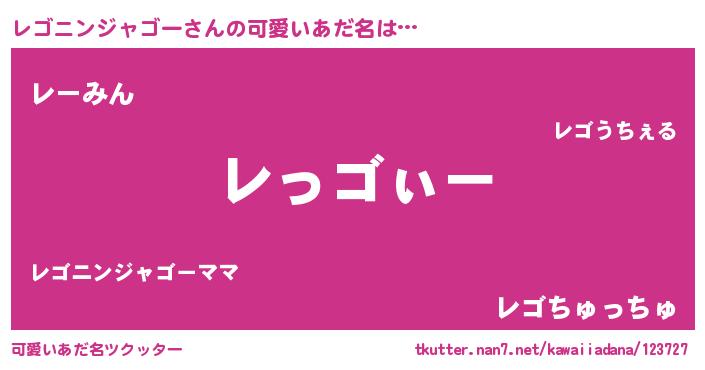 | 男性向けラノベタイトル風あだ名 | 『レゴニンジャゴーの嫁は女の子じゃないと思った?』 |