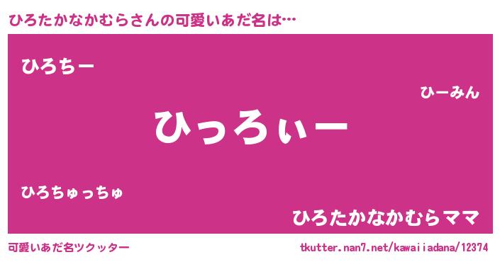 | ポケモン風あだ名 | 『ヒヒロタカナカムラ』『ヒロタダネ』 |