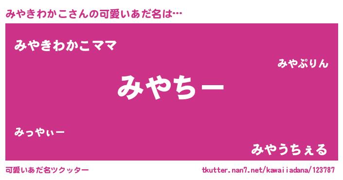 | 意味不明あだ名 | 『みやきわかこフォーエバー』 |
