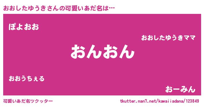 | 恥ずかしいあだ名 | 『プリティーおおしたゆうき』『おおちん』 |