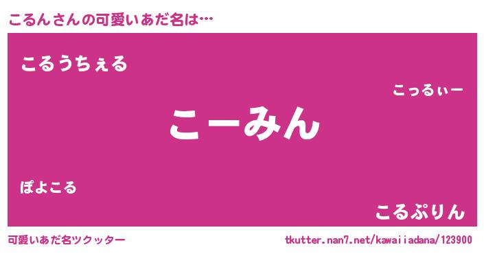 | 女子向けラノベタイトル風あだ名 | 『男装こるんの憂鬱な任務』『闇のこるん』 |