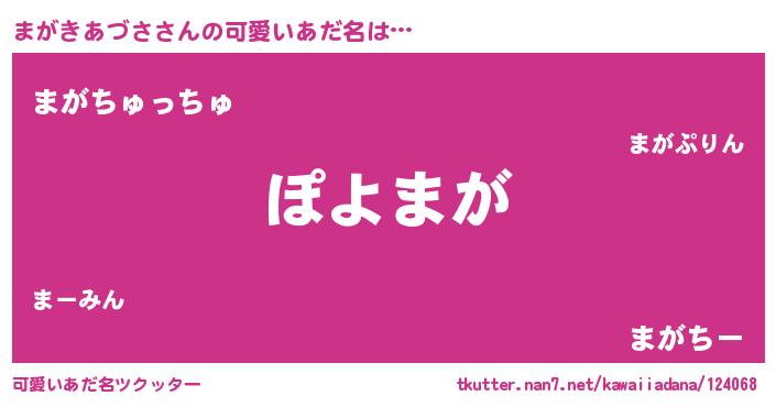 | 男性向けラノベタイトル風あだ名 | 『この素晴らしい世界にまがきあづさを!』 |