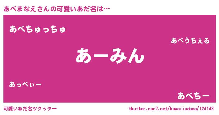 | 欧米人風あだ名 | 『あべまなえ・ステッグマイヤー』 |