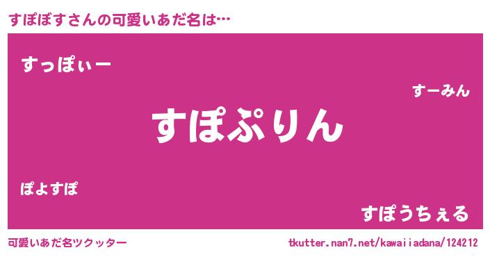 | 意味不明あだ名 | 『なめこ科すぽぼす属』『自称すぽぼす』 |