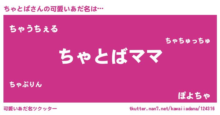 | 男性向けラノベタイトル風あだ名 | 『ちゃとばという概念が存在しない退屈な世界 』 |
