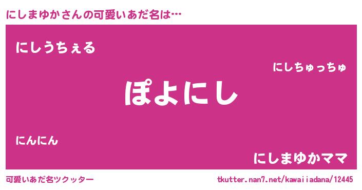 | ヘコむあだ名 | 『にしまゆか(笑)』『にしにゅー』 |