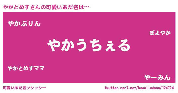 | 男性向けラノベタイトル風あだ名 | 『Re:やかとめすから始める異世界生活』 |