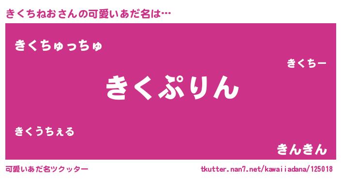 | ヘコむあだ名 | 『きくっふぃ~』『つくし』 |