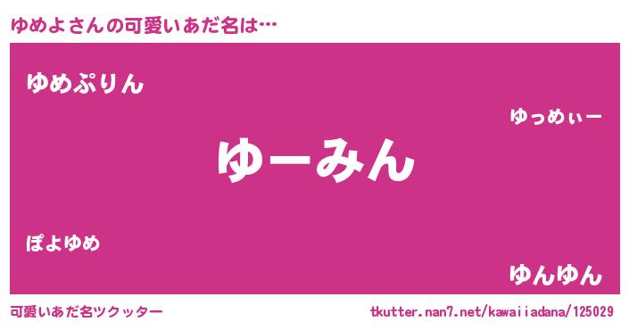 | ヘコむあだ名 | 『ゆめっふぃ~』『ゆめぷりん』 |