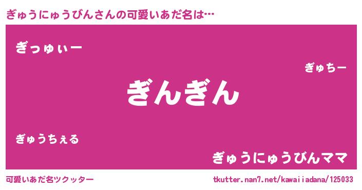 | ヘコむあだ名 | 『ぎゅにゅー』『ぎゅっ子』 |