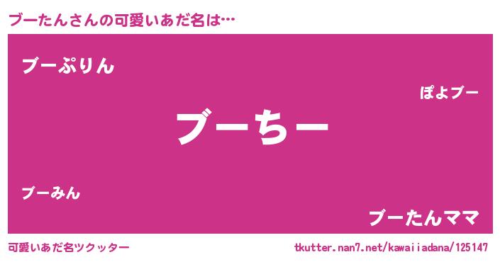 | 意味不明あだ名 | 『ブーたんフォーエバー』『自称ブーたん』 |
