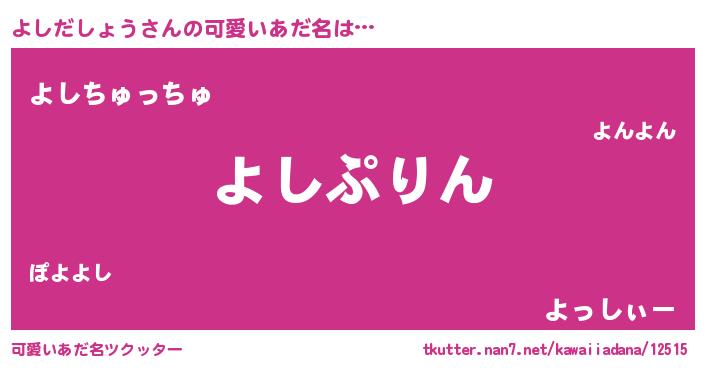 | 女子向けラノベタイトル風あだ名 | 『よしだしょうの玉の輿計画!』 |
