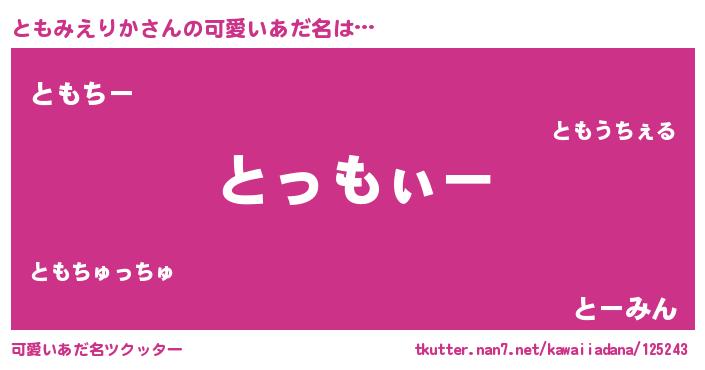 | ポケモン風あだ名 | 『ヒトモミエリカ』『トモミダネ』 |
