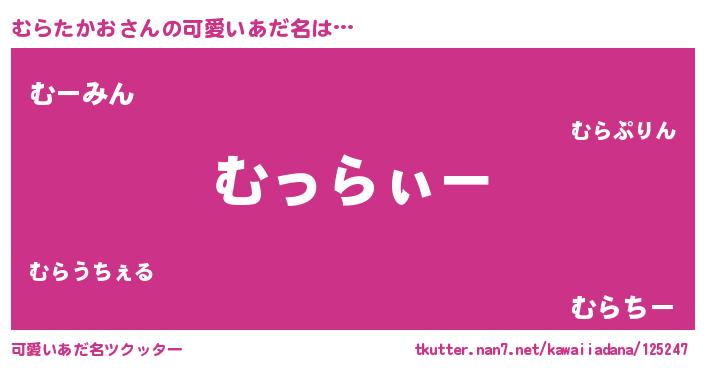 | ヒーロー風カッコイイあだ名 | 『天弓騎士ムラ』『最強戦士ムラタカオ』 |
