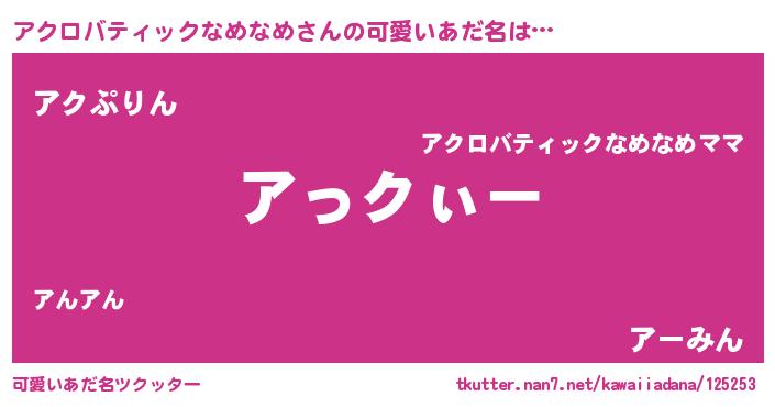 | 萌えアニメ | 主人公(アクロバティックなめなめ)のあだ名『 アク様』 |