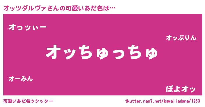 | 男性向けラノベタイトル風あだ名 | 『おまえをオタクにしてやるから、俺をオッツダルヴァにしてくれ! 』 |