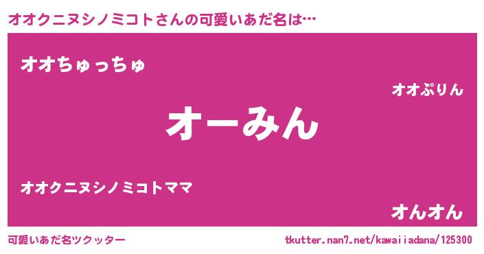 | 男性向けラノベタイトル風あだ名 | 『うちのオオクニヌシノミコトが世界を掌握している!』 |